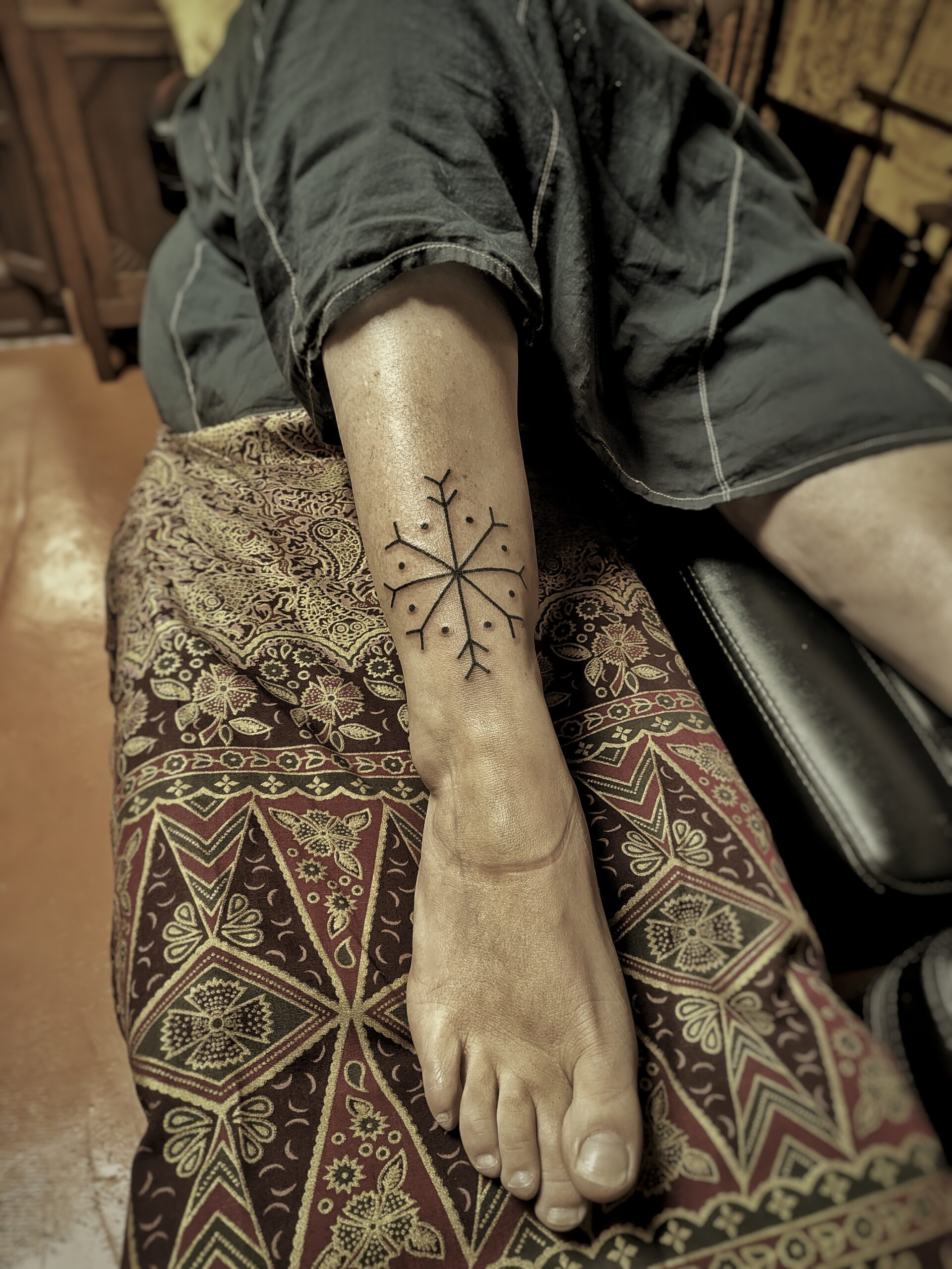 Male Leg: Freehand ornamental pattern leg, inspired by the Balinese ornaments. Every pattern had its symbolic meaning.